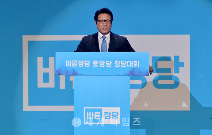 바른정당 정병국 초대 당대표가 24일 오후 서울 송파구 올림픽공원 내 올림픽 홀에서 열린 '바른정당 중앙당 창당대회'에서 인사말을 하고 있다. 2017.01.24.