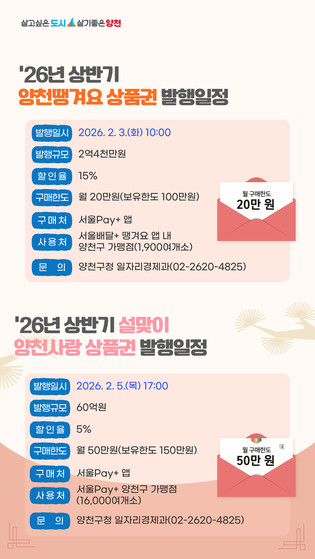 양천구, 설 명절 앞두고 양천사랑·땡겨요상품권, 총 62억 원 발행