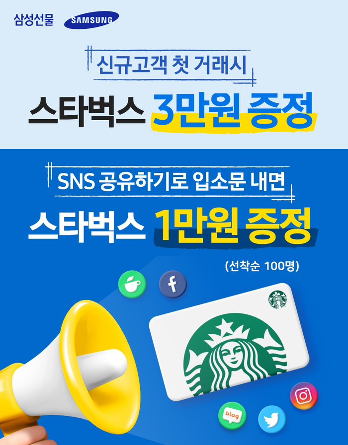 첫 거래시 3만원, SNS 공유시 1만원 기프티콘 증정
