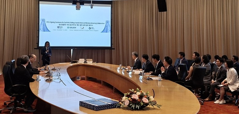 [세계타임즈=대전 이채봉 기자] 대전시는 합성생물학 분야에서 세계적 선도기관인 싱가포르 국립대(NUS)와 첨단 바이오제조 공동연구 및 국제협력을 위한 업무협약(MOU)을 12일 체결했다.