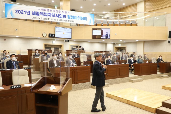 [세종=세계타임즈 이채봉 기자] 세종특별자치시의회(의장 이태환)는 28일 본회의장에서 청렴의식 확산 및 청렴한 의정문화 조성을 위해 의원 전원 및 사무처 직원을 대상으로 청렴아카데미를 개최한 데 이어, 청렴도 향상 종합대책을 발표했다.