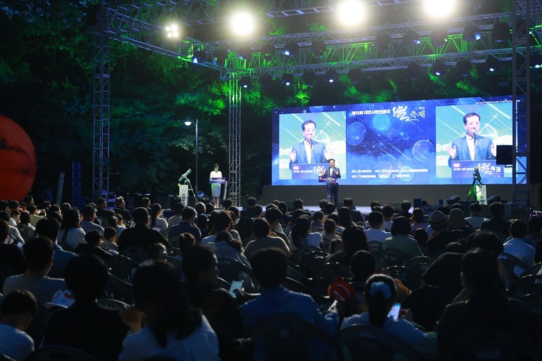 [대전 세계타임즈=이채봉 기자] 대전시의회 조원휘 부의장은 4일 유성구 신성동 소재 대전시민천문대에서 개최된 ‘제13회 대전시민천문대 별 축제’에 참석해 대전시민천문대 최형빈 대장을 비롯한 내·외빈들과 인사를 나누고 관계자들을 격려했다.