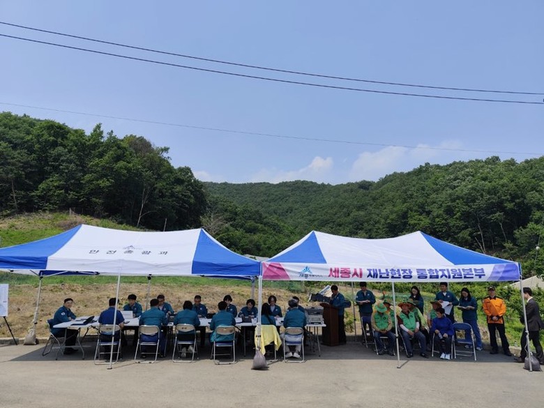 [세종 세계타임즈=이채봉 기자] 세종특별자치시(시장 최민호)가 27일 연서면 와촌리 일원에서 여름철 극한호우에 대비한 산사태 재난 대비 주민참여형 대피훈련과 재난현장 통합지원본부 설치·운영 점검을 실시했다.