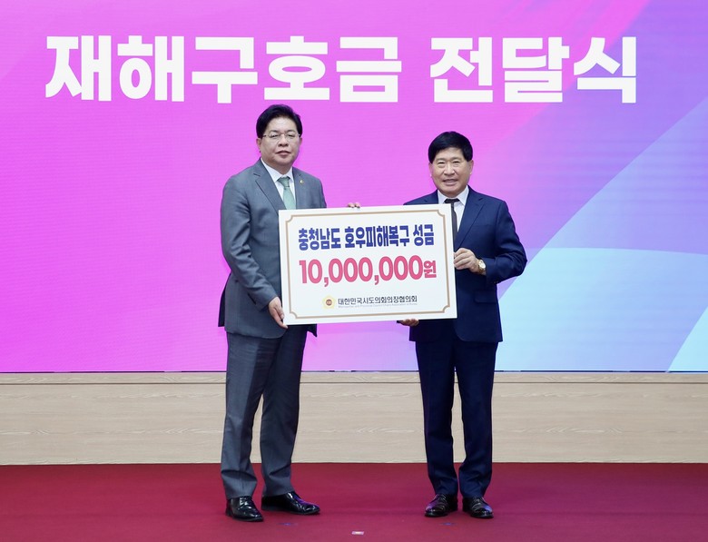 [충남 세계타임즈=백택기 기자] 충남도의회(의장 홍성현)는 30일부터 이틀간 부산에서 개최되는 대한민국시도의회의장협의회 제5차 임시회에 참석해 지난 7월 호우 피해에 대한 재난구호금 천만 원을 지원받았다.