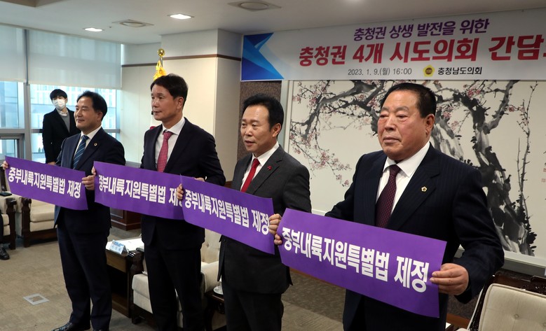 이와 더불어 충북도의회 황 의장은 국가의 새로운 신성장 동력 역할을 할 ‘중부내륙연계발전지역 지원에 관한 특별법’ 제정 관련 “진정한 균형발전을 실현할 수 있도록 특별법이 조속히 통과될 수 있도록 적극적인 지지와 충청권 메가시티 형성을 위한 대전~세종~충북 광역철도 청주 도심 통과 노선 확정을 위해 충청권 4개 시도의회 모두가 힘을 모아 달라”고 도민의 뜻을 전했다.