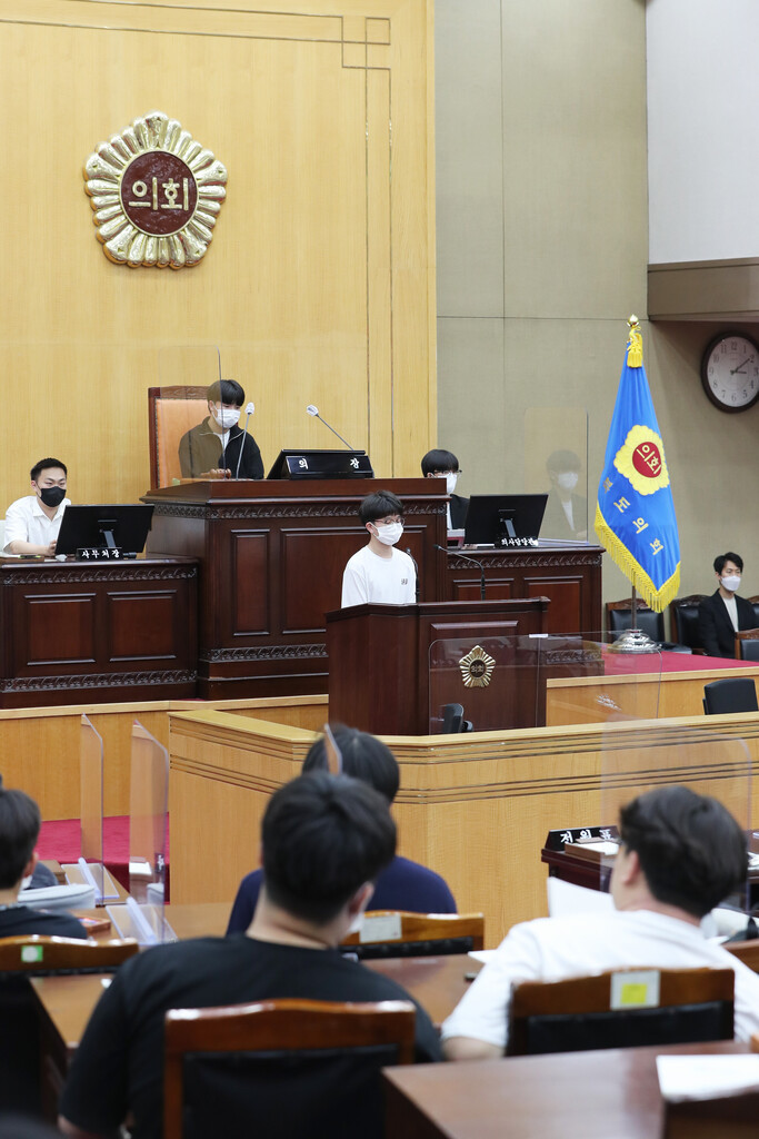 의장 역할을 한 정석영 학생은 “의장이 발언하는 곳에서 직접 본회의를 진행해 보니 내가 진짜 의장이 된 것 같았다."라며 "지방의회의 기능과 역할에 대해 배우고 의원이라는 직업에 대해 좀 더 관심을 가지게 되는 계기가 되었다"라고 소감을 말했다.
