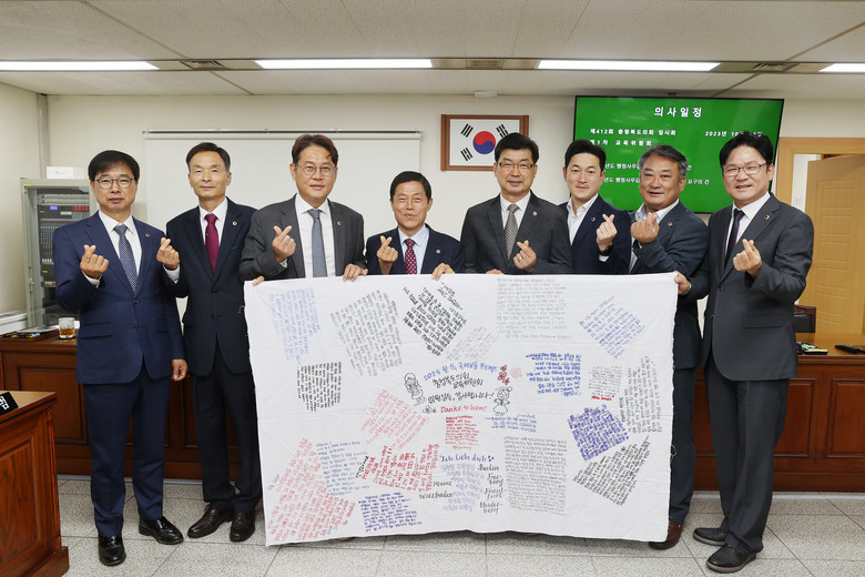 [충북 세계타임즈=이현진 기자] 충북도의회 교육위원회(위원장 김현문)가 12일 한-독 국제교류 프로젝트 참가단으로 선발된 학생들로부터 감사의 마음을 담은 손 편지 휘장을 받았다.