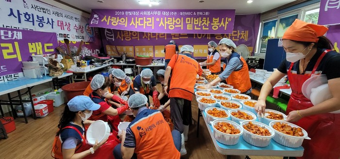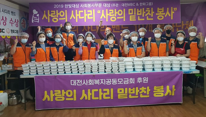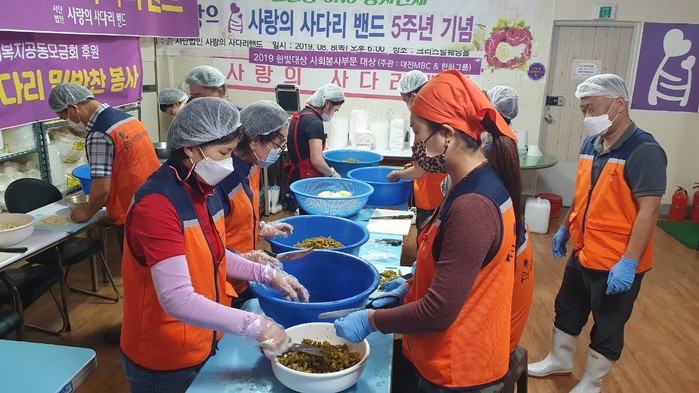 [대전=세계타임즈 이채봉 기자] 대전광역시 SNS 일만명 봉사단체 사랑의 사다리 밴드(리더 이정제)는 지난8일 오전9시~오후1시에 대덕구 중리동에 위치한 사랑의 사다리 밴드 사무실에서 밑반찬을 만들어서 유성구 소외계층 50가정에 전달을 하였다.