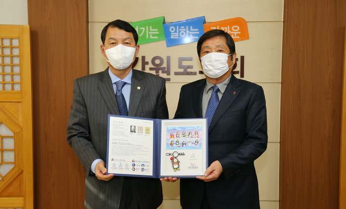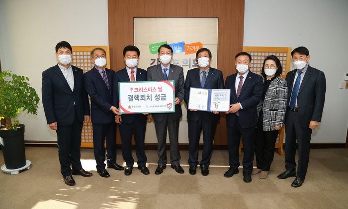[강원도=세계타임즈 김민석 기자] 강원도의회(의장 곽도영)은 12월 1일(화) 13시 30분 도의회 의장실에서 대한결핵협회 강원도지부 황철 회장 등과 함께 크리스마스 씰 증정식을 개최하였다.