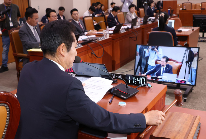 23일 국회에서 열린 법제사법위원회에서 정청래 위원장이 의사봉을 두드리고 있다. 2024.9.23