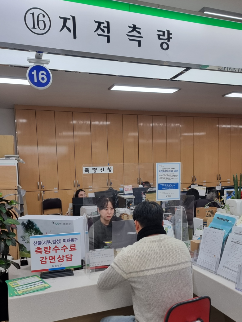 지난해에 군민의 경제적 부담 완화를 위해 지적측량 수수료 감면 서비스를 시행한 결과 국가유공자 및 장애인 대상 92필지에 대해 14백만 원, 측량 재의뢰 8필지에 대해 3백만 원, 산불 피해지역 35필지에 대해 9백만 원 감면 등 총 26백만 원의 감면 혜택을 받았다.