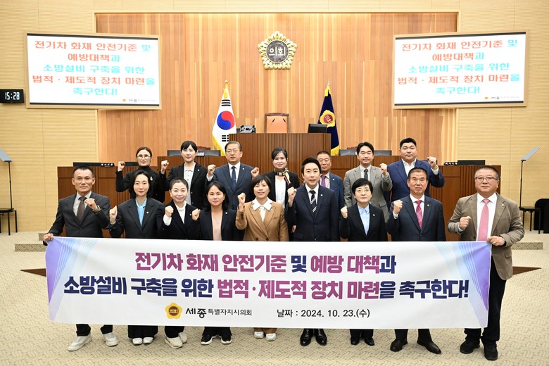 한편, 세종시의회는 ‘전기차 및 전기차 충전시설 화재안전대책 촉구 건의안’을 국회의장과 국무총리, 더불어민주당 대표, 국민의힘 대표, 행정안전부장관, 산업통상자원부장관, 환경부장관, 국토교통부장관, 소방청장 등에 이송할 예정이다.