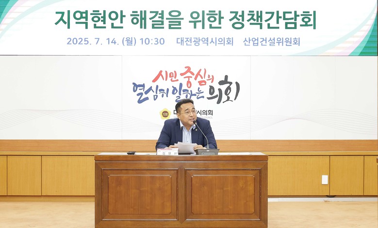 [대전 세계타임즈=이채봉 기자] 대전시의회 산업건설위원회는 김영삼 의원(국민의힘, 서구2) 주재로 14일 시의회 소통실에서 ‘지역 현안 해결을 위한 정책간담회’를 개최했다.