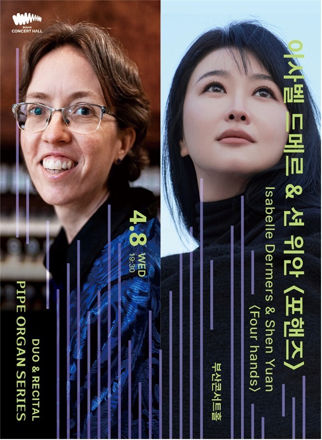 첫 공연은 4월 8일 저녁 7시 30분 오르가니스트 ‘이사벨 드메르&션 위안’의 포핸즈* 무대로, 두 연주자가 한 대의 오르간을 함께 연주하는 특별 형식의 공연이다. 구스타프 홀스트의 <행성>을 오르간 버전으로 선보여 오르간 음악의 다양성과 확장성을 보여준다.