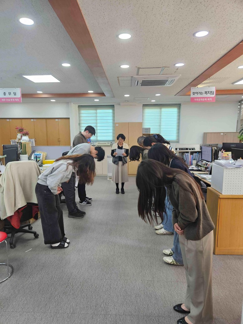 이현원 면장은 “인사는 단순한 형식이 아니라 관계 형성의 시작점이자 서로의 신뢰를 쌓는 중요한 요소”라며 “공무원의 친절한 태도는 단순한 업무수행을 넘어 사회적 가치를 실현하는 중요한 역할을 한다.”고 말했다.