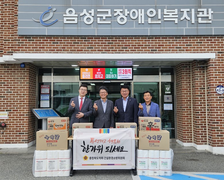 [충북 세계타임즈=이현진 기자] 충북도의회 건설환경소방위원회(위원장 이태훈, 괴산)는 추석 명절을 앞두고 사회복지시설을 찾아 위문품을 전달하며 이웃사랑을 실천했다.