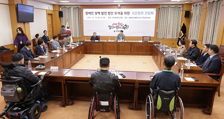 [대전 세계타임즈=이채봉 기자] 대전시의회는 10일 오후 3시 30분 시의회 소통실에서 ‘장애인 정책 발전 방안 모색을 위한 의견청취 간담회’를 개최했다.