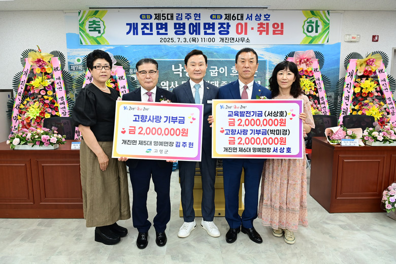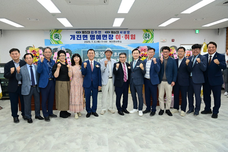 서상호 명예면장은 취임사를 통해, “개진면은 제 고향이자 마음의 중심입니다. 명예면장으로서 면민의 삶에 조금이나마 도움이 될 수 있도록 더 낮은 자세로 지역과 함께 숨 쉬며 소통하겠습니다”고 전했다.