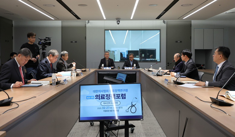 27일 서울 용산구 대한의사협회 회관에서 열린 의협 의료정책연구원 주최 의사 인력 수급 전망 정책 포럼에서 김택우 의협 회장이 발언하고 있다. 2025.2.27