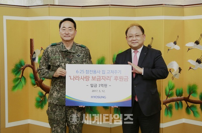 효성이 6월 15일 충남 계룡대 육군본부에서 참전용사의 주거환경을 개선하는 ‘나라사랑 보금자리’ 사업에 1억원을 후원했다. |