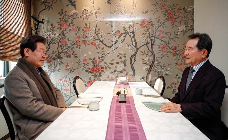 더불어민주당 이재명 대표와 정세균 전 국무총리가 28일 서울 종로구의 한 음식점에서 오찬 회동을 하고 있다. 2023.12.28 [국회사진기자단]