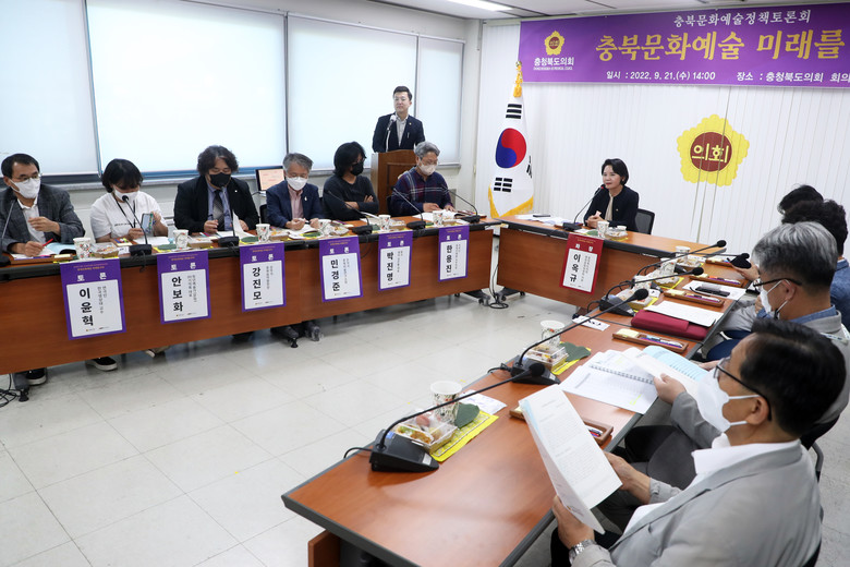 [충북 세계타임즈=이현진 기자] 충북도의회 행정문화위원회(위원장 노금식)는 제403회 정례회 기간 중인 9월 21일(수) 14시, 충북도의회 회의실에서 ‘충청북도 문화예술 정책토론회’를 개최해 도민과 전문가의 의견을 수렴하는 시간을 가졌다.