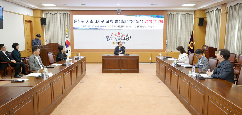 [대전 세계타임즈=이채봉 기자] 대전광역시의회 조원휘 의원(더불어민주당, 유성구 3)은 17일 10시, 시의회 소통실에서 ‘유성구 서초 3지구 교육 활성화 방안 모색 정책간담회’를 개최했다.