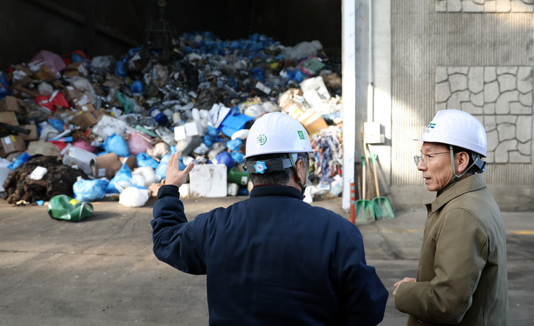 [세계타임즈=경기도 송민수 기자] 올해부터 수도권 생활폐기물에 대한 ‘직매립’이 금지된 가운데 김성중 경기도 행정1부지사가 13일 평택시의 한 민간처리시설(소각, 재활용)을 찾아 폐기물 처리 현황을 점검했다.
