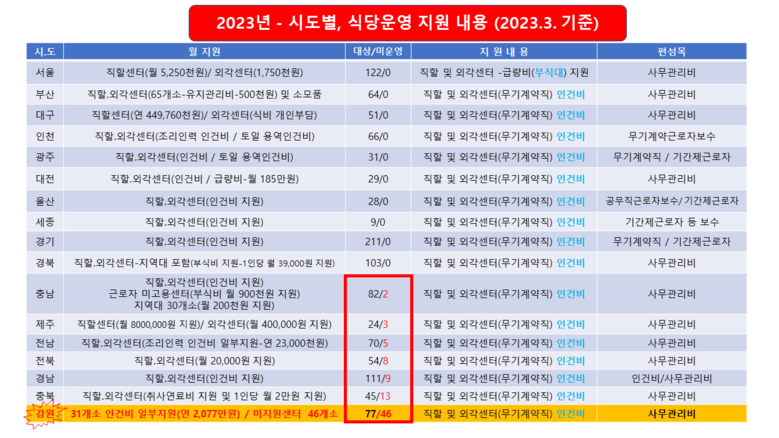 *별첨자료 : 2023년 시도별 119안전센터 급식시설 운영현황