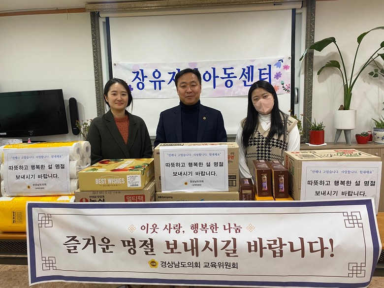 [경남 세계타임즈=최성룡 기자] 경남도의회 교육위원회(위원장 박병영)는 2.2일 설을 맞이하여 김해의 아동복지시설인 장유지역 아동센터를 방문했다. 이날 방문한 손덕상 의원은 시설에 위문품을 전달하고 시설 관계자들을 격려했다.