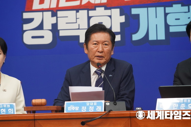 '정청래' 더불어민주당 당대표가 11일 오전 서울여의도 국회에서 열린 최고위원회의에서 발언을 하고 있다.