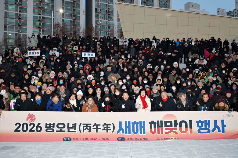 [동구 세계타임즈=심하린 기자] 인천 동구(구청장 김찬진)는 1일 송현근린공원에서 각 동 주민자치회·자생단체 회원 등 다수의 구민이 참여한 ‘2026년 병오년 새해 맞이’행사를 개최했다고 밝혔다.