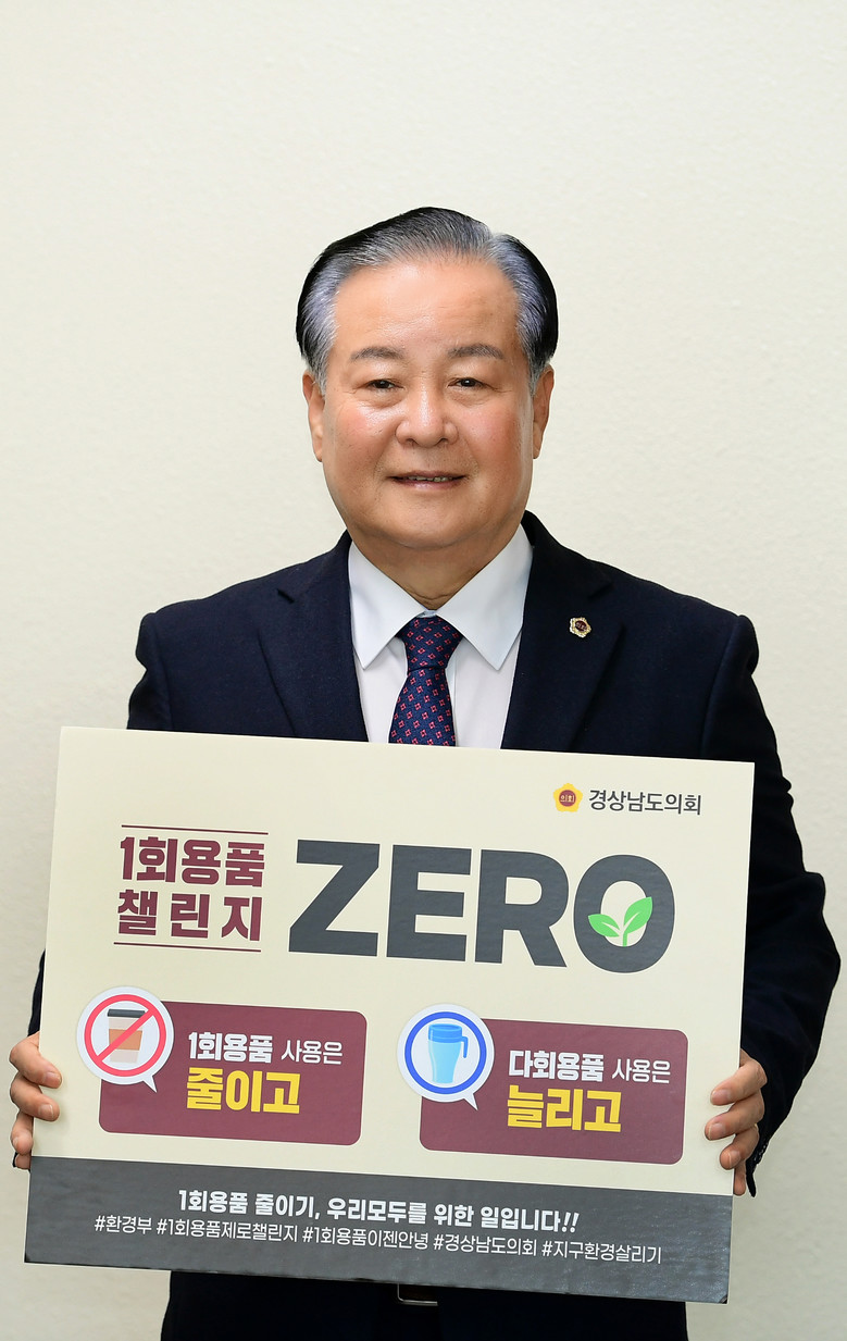 [경남 세계타임즈=최성룡 기자] 강용범 경상남도의회 제2부의장은 21일 환경부에서 주관하여 전개되고 있는 1회용품 제로 챌린지에 참여했다.