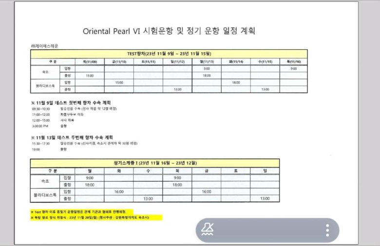 현재 계획대로라면 매주 월요일과 목요일 주2회, 9시에 속초로 입항을 하고, 당일 18시에 다시 출항하는 구조이기에,