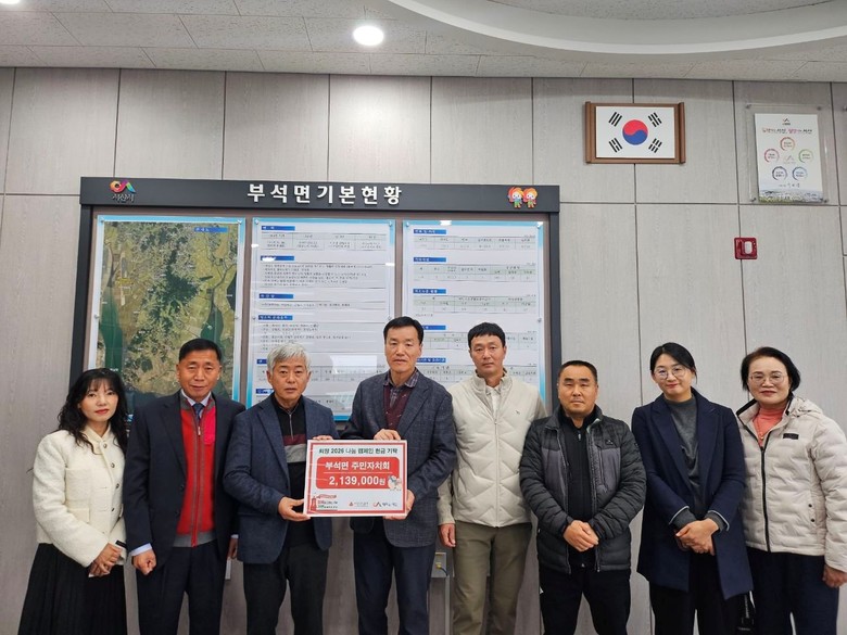 한편, 부석면 주민자치회가 기탁한 성금은 충남사회복지공동모금회 사랑의 열매를 통해 고립·위기가구 긴급 지원과 사회적 약자를 위한 맞춤형 돌봄 지원 등 다양한 복지사업에 사용될 예정이다.