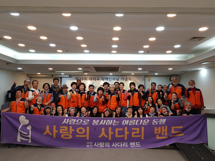 약700명의 대덕구장애인들이 참석한 기념식행사에서 사랑의 사다리 밴드 회원 40명은 오전9시부터 교통봉사,행사장 정리 및 축하위문공연, 점심급식 봉사를 하면서 원활한 행사진행을 도왔다.