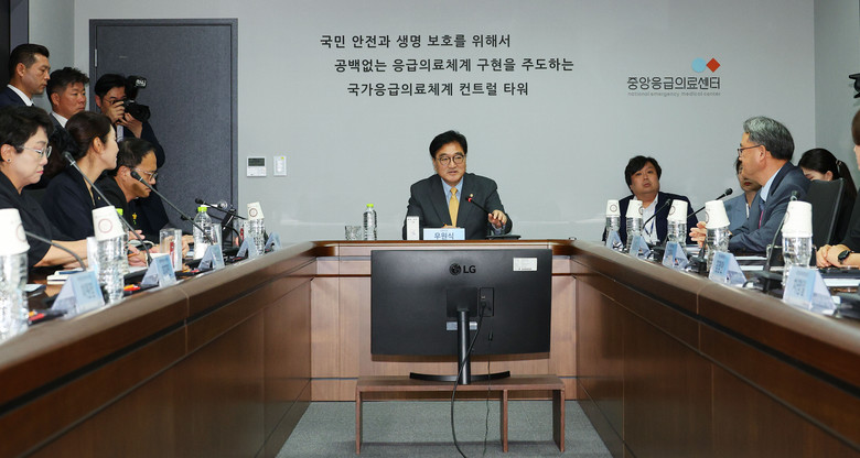 [세계타임즈 = 신상철 기자] 우원식 국회의장은 3일 서울 중구 국립중앙의료원 중앙응급의료센터를 찾아 응급의료 체계를 점검하고 비상 근무자를 격려했다.우 의장은 이 자리에서 최근 응급실 대란으로 국민들의 불안이 커서 현장을 살펴보러 왔다며 현장을 찾아 이 상황을 어떻게 고쳐나가야 할지 그 해법을 함께 찾고자 한다고 말했다.자신이 의료 대란 해결을 위한 사회적 대화를 제안한 것을 언급하며 현 상황이 빨리 해결될 수 있도록 최선을 다하겠고, 이번 기회를 공공의료가 우리 사회에 제대로 뿌리내리는 계기로 만들자라고 강조했다.우 의장은 어려운 상황에서도 대한민국 응급의료 체계를 굳건히 지켜주고 있는 임직원들에게 감사드린다며 의료센터 관계자들을 격려하기도 했다.주영수 국립중앙의료원장은 이에 현황을 직접 확인하고 공공의료의 중요한 플랫폼인 응급의료 시스템 발전에 대해 함께 고민해주길 부탁한다라고 말했다.국립중앙의료원 측은 이어진 간담회에서 의료계 주요 현안으로 광역 응급 의료 상황실 운영, 응급 의료 전달 체계 개편, 응급 의료 컨트롤타워 명확화 등을 꼽았다.이날 방문에는 국회 보건복지위원회의 박주민 위원장과 야당 간사인 강선우 의원 및 조국혁신당 김선민 의원이 동행했다.