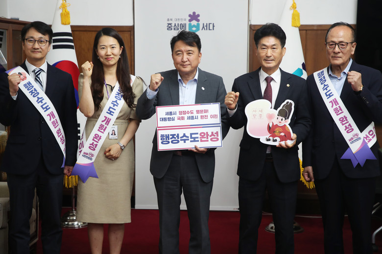 또 행정수도 완성이 적힌 팻말을 들고 기념 촬영도 진행했다.