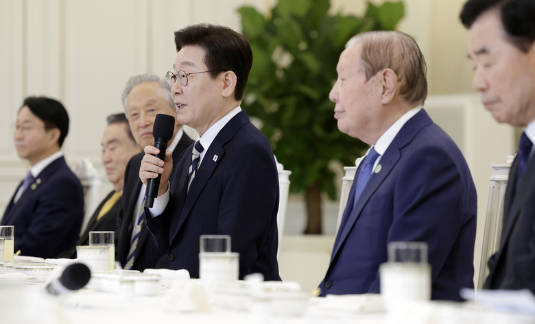 더불어민주당 상임고문들은 25일 이재명 대통령에게 남북 관계 개선을 위해 노력해달라고 한 목소리로 주문했다.이규연 청와대 홍보소통수석은 이날 청와대에서 열린 상임고문단 오찬 간담회 직후 브리핑에서 "민주당 원로분들이어서 남북 관계에 대한 얘기가 많이 나왔다"며 "역사의 큰 흐름이라는 측면에서 한반도 평화와 남북 관계가 중요하다는 인식을 갖고 계신 것으로 알고 있다"고 전했다.이 수석에 따르면 임채정 전 국회의장은 이 대통령에게 "당장 효율이 있든 없든 남북 관계를 적극적으로 관리해 나가야 한다"고 당부했고, 한명숙 전 국무총리도 "남북 평화의 틀이 잡혔으면 한다"고 했다.