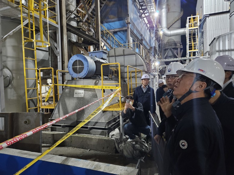 김영훈 고용노동부 장관이 25일 질식 사고가 발생한 경북 경주 한 아연가공업체를 방문해 현장을 둘러보고 있다. [노동부 제공]
