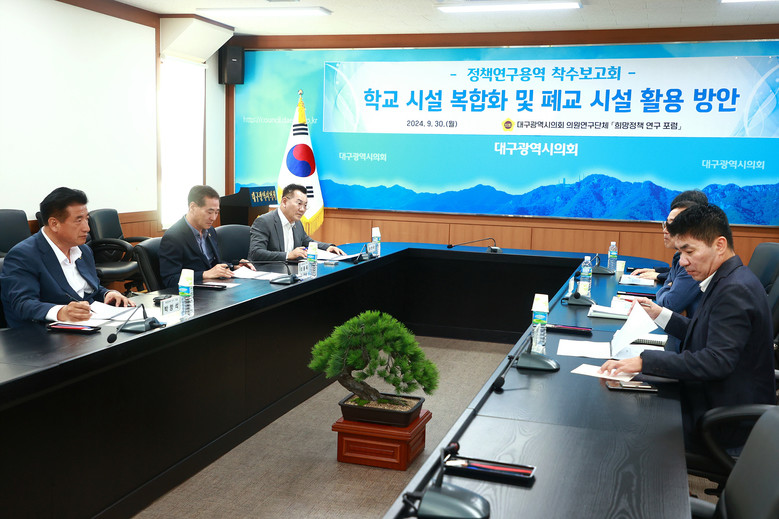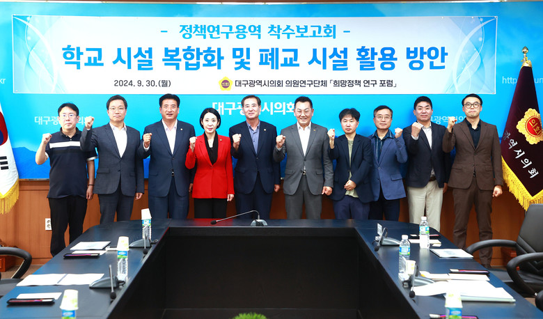 [대구 세계타임즈=한윤석 기자] 대구시의회 의원 연구단체인 ‘희망정책 연구 포럼’(대표 손한국 의원)은 9월 30일(월) 오후 3시 시의회 2층 회의실에서 소속 의원과 연구진 등이 참석한 가운데 이동욱 의원(북구5)이 대표 제안한 ‘학교 시설 복합화 및 폐교 시설 활용 방안 연구’ 착수보고회를 개최했다.