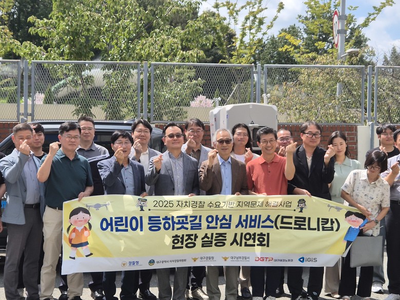 ▸ 9월부터 2개월간 등하교 시간대 드론 활용해 아동안전 서비스 제공 [세계타임즈=대구 한윤석 기자] 대구광역시 자치경찰위원회는 9월 5일(금) 남구 대덕초등학교 일대에서 대구경찰청, 남부경찰서, 대구테크노파크, 지역 주민 및 관계 전문가 30명이 참석한 가운데 ‘어린이 등하굣길 안심 순찰 서비스 실증 시연회’를 열었다.