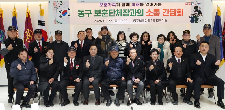 박희조 동구청장은 “보훈은 우리의 역사를 기억하고 미래를 준비하는 소중한 토대”라며 “국가유공자들의 숭고한 희생과 헌신이 오늘의 대한민국을 만들었다는 사실을 깊이 새기고, 오늘 간담회에서 나온 의견들을 면밀히 검토해 실질적인 지원으로 이어질 수 있도록 지속적으로 노력하겠다”고 말했다.