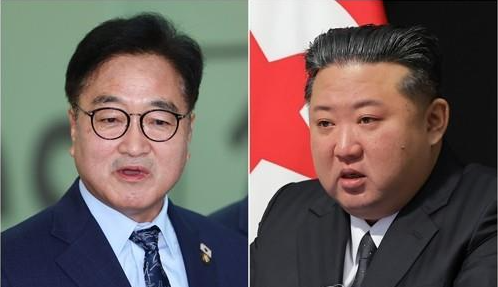 우원식 국회의장(왼쪽)과 김정은 북한 국무위원장