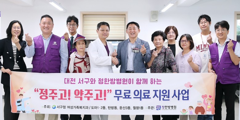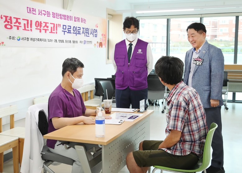 [서구 세계타임즈=이채봉 기자] 대전 서구(구청장 서철모)는 이달 17일 정한방병원과 협력하여 무료 의료지원 사업인 하반기 ‘정주고! 약주고!’ 찾아가는 의료서비스를 추진했다고 18일 전했다.