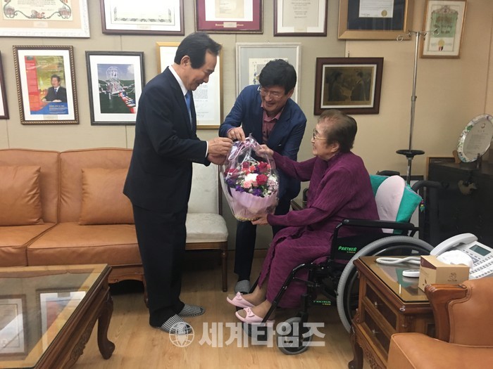[세계타임즈 이채봉 기자]정세균 국회의장은 5월 29일(화) 국회의장 퇴임인사 차 고(故) 김대중 전 대통령의 부인인 이희호 여사를 예방했다.