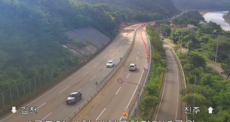 | ▲ 국도3호선(산청군 신안면 외송리 소재)1차선 통행(22일 오전 8시 기준) |