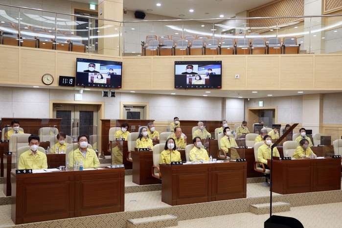 [세종=세계타임즈 이채봉 기자] 세종특별자치시의회(의장 이태환)는 14일 본회의장에서 세종시 전 의원을 대상으로 제주특별자치도 조천농협과 한림수협 관계자를 실시간 화상회의 프로그램으로 연결하는 ‘온라인 국내 의정연수’를 진행했다.