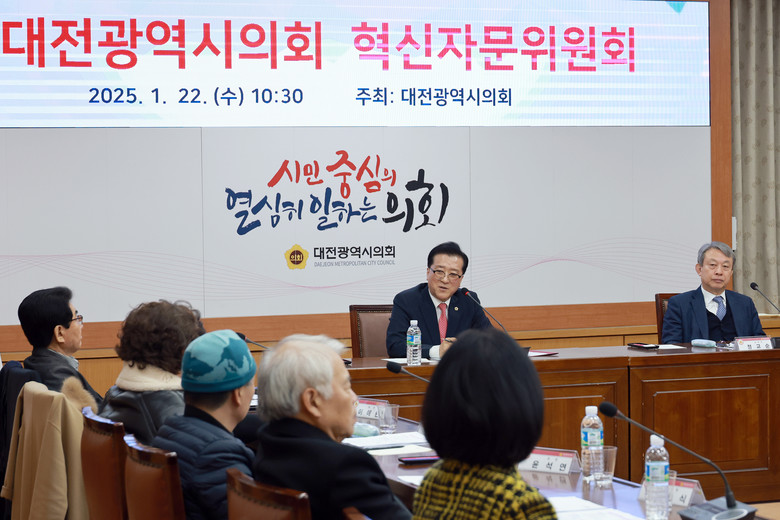 자리를 함께 한 조원휘 의장은 회의에 앞서 2025년 새해를 어려움을 극복하고 새로운 길을 개척한다는 의미의 사자성어 ‘극세척도(克世拓道)’를 가슴에 새기고 의정활동에 임하겠다는 계획을 밝혔다. 조 의장은 이어 지난해 연말에 국민권익위원회가 발표한 2024년도 공공기관 종합 청렴도 평가에서 대전시의회가 8개 특광역시의회 중 1위에 오른 성과를 소개하며 “새해에는 1등급을 받을 수 있도록 의원과 의회사무처 직원 모두가 정진하겠다”며 “이를 위해 혁신자문위원회 상시 가동으로 의회 운영 전반에 변화를 이끌어내는 데 혁신자문위가 아낌없는 조언을 해달라”고 말했다.