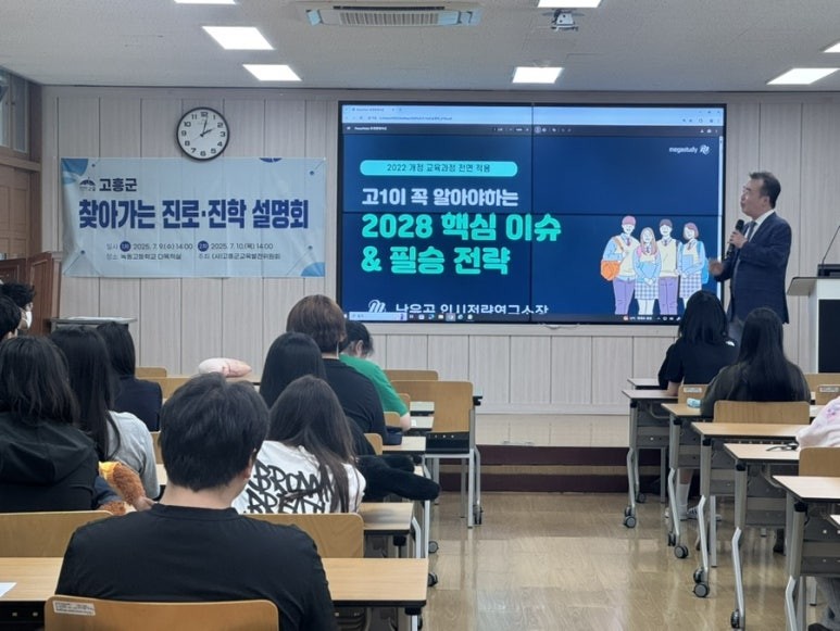 이번 설명회는 총 3회에 걸쳐 진행됐으며, 7월 9일과 10일에는 녹동고등학교 1, 2학년을 대상으로, 15일에는 고흥고등학교 3학년을 대상으로 열렸다. 학년별 입시 제도 변화에 맞춘 맞춤형 입시전략 강연이 진행돼 학생들로부터 높은 관심과 호응을 얻었다.